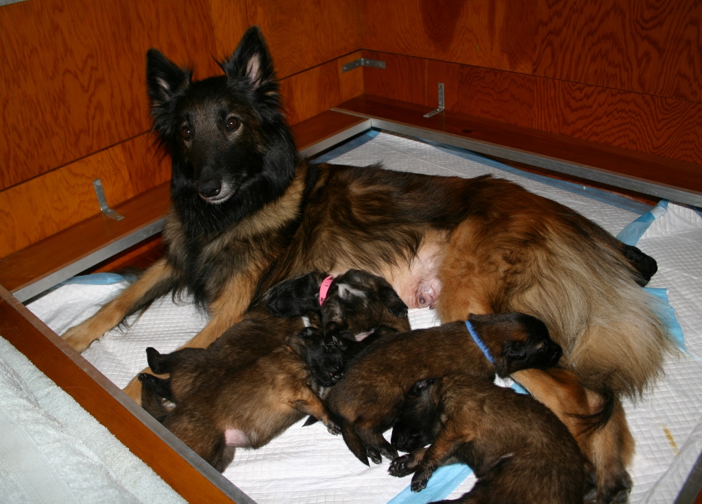 IMG_1815 (1024×736) Published April 6, 2020 at 1024 × 736 in Puppy Page – 0 to 3 wks Look how they’ve grown! Full tummies! L to R – Mona (gray), Ellie (pink – upside down), Leah (chocolate), Ryan (blue boy), Leo (no collar). Gigi is on other side of Kenya’s tail. Continue reading →