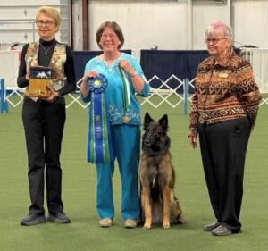 3/29/23 – Elsa was Terv HIT at the RBTF Obedience trial with a score of 191 out of Open B!