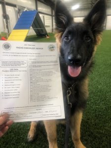 7/25/20 – Elsa (Safari Living The Adventure TKN) earned her Trick Dog Novice title at just 4 months and 5 days old – 4 months is the minimum age for the title! Video taken on Saturday but not viewed by the evaluator until Sunday, 7/26.