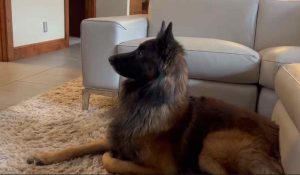 10/27/23 – Otter (Safari Living Dangerously AX AXJ XF TKN) completed the Agility Excellent FAST title! Below – Otter watching the AKC Agility Nationals on TV!